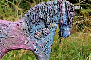 flowers created with pearlescent acrylic modelling paste (I put some turquoise glitter